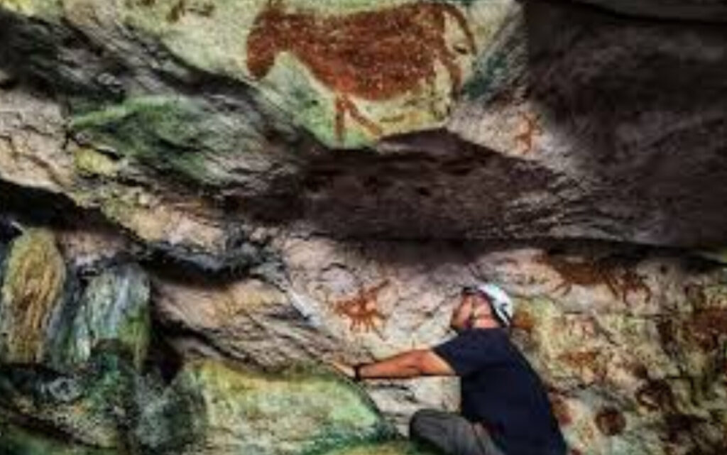 Adhi discovered the newly dated hand stencils beneath later cave paintings depicting a person riding a horse alongside a chicken. He said it was initially difficult to convince his colleagues that the markings were human hands, but he eventually identified areas that clearly resembled fingers.