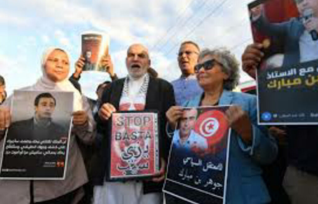 One of the participants was Issam Chebbi, head of the centrist Al Joumhouri (Republican) Party, who is also imprisoned after being convicted in the same mass trial that sentenced Ben Mbarek earlier this year.