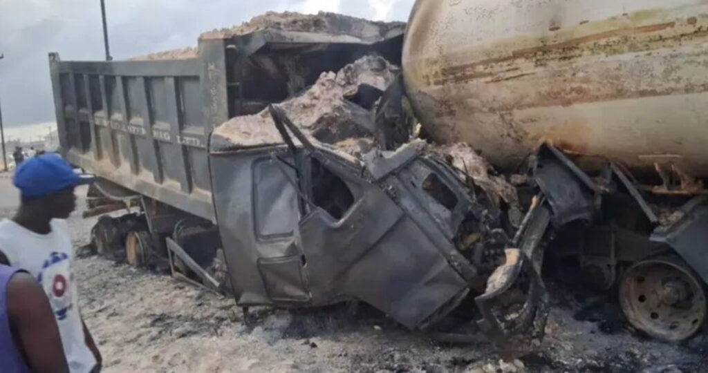 Two persons were burnt to death in the early hours of Saturday after a gas tanker and a tipper truck collided at Tera Ahmed bus stop, Sangotedo, along the Lekki–Epe Expressway in Lagos.